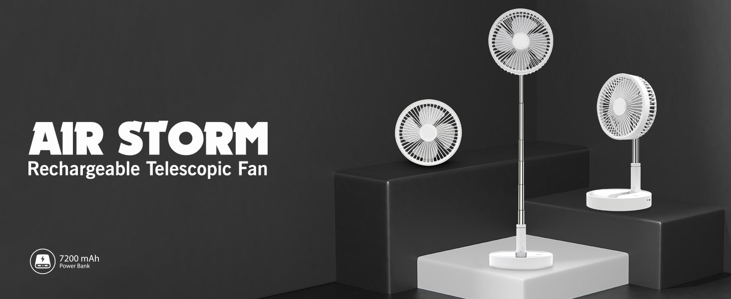 Air Storm is a Rechargeable Telescopic Table Fan with a 7200mAh Power Bank that’s proudly sourced, engineered, manufactured and assembled right here in India! AIR STORM is a part of ’s Make in India initiative, to develop an indigenous value chain where everything from the smaller electrical components to the large housings & shells are manufactured using local components.