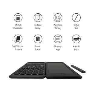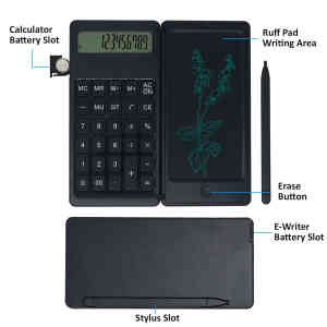 DigiFold is powered using coin batteries and can be easily replaced. What’s more is that DigiFold comes with dedicated battery slots each for the Calculator and the LCD E-Writer Rough Pad. This not only saves power but also makes DigiFold super-efficient to use.