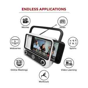 Tellivibe Max is an innovative Bluetooth speaker with a smartphone holder and a retro radio design that allows you to go hands-free as you immerse yourself & enjoy your favourite shows & movies.